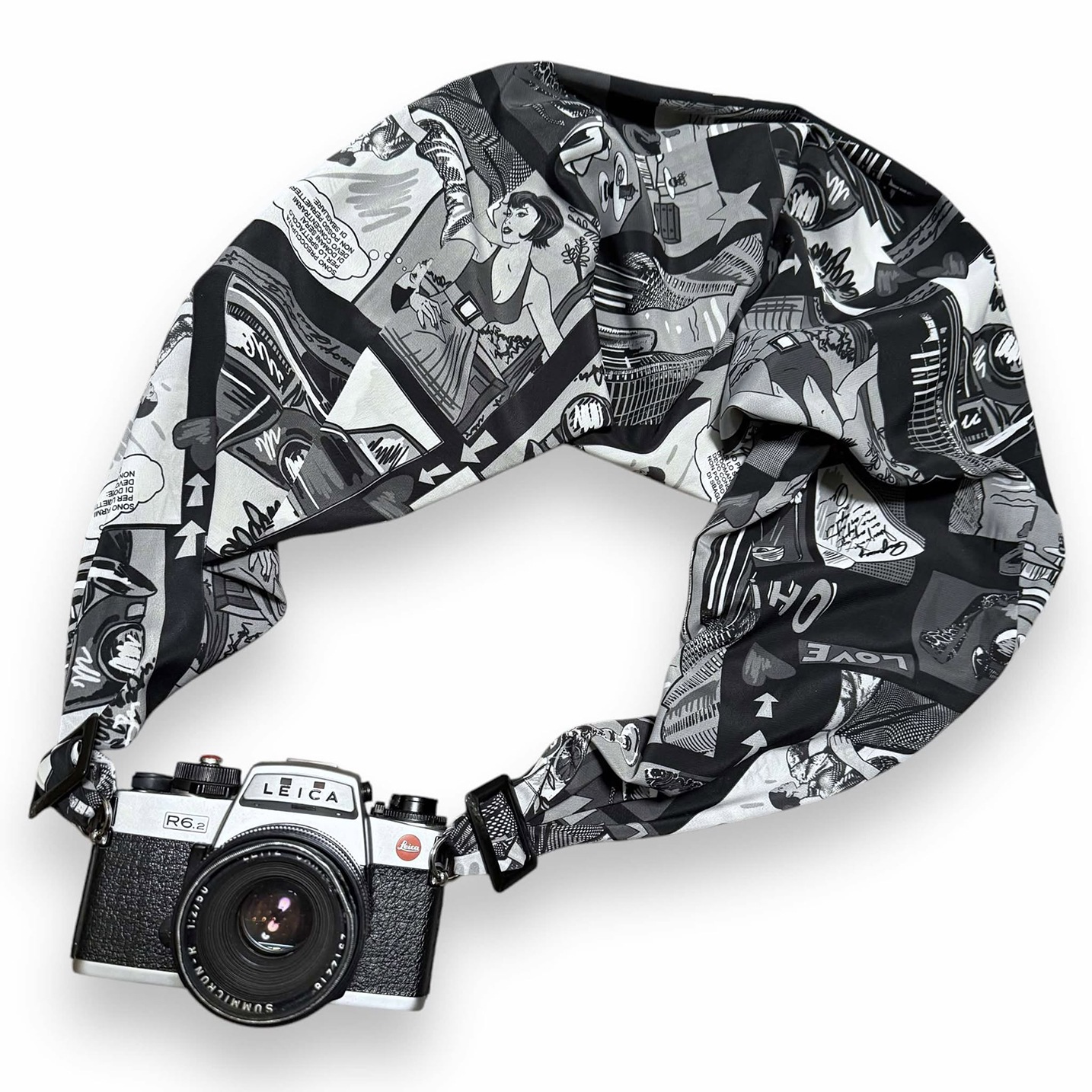 おしゃれに装着できるうえ、使用後はカメラを包んで保護も可能。