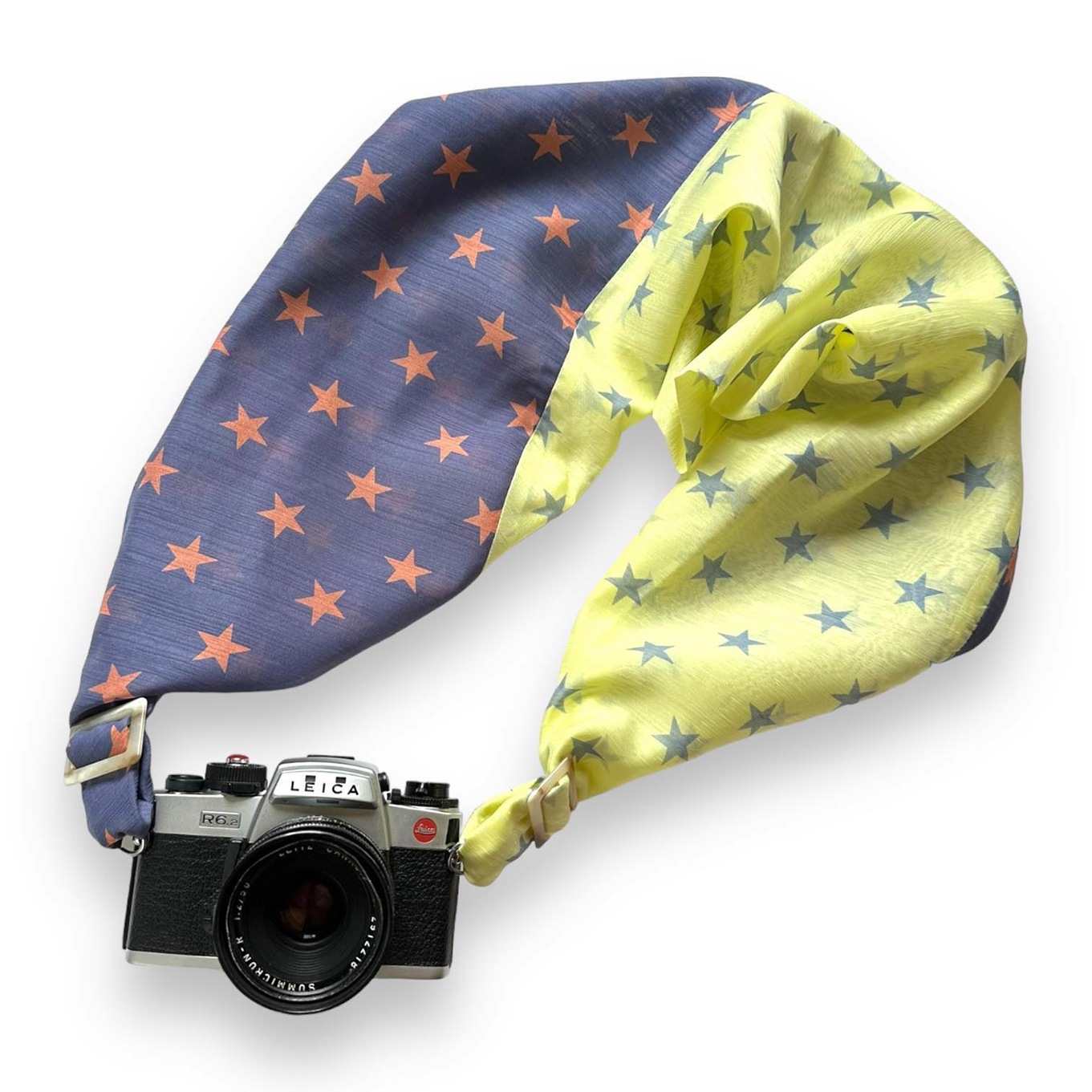 おしゃれに装着できるうえ、使用後はカメラを包んで保護も可能。