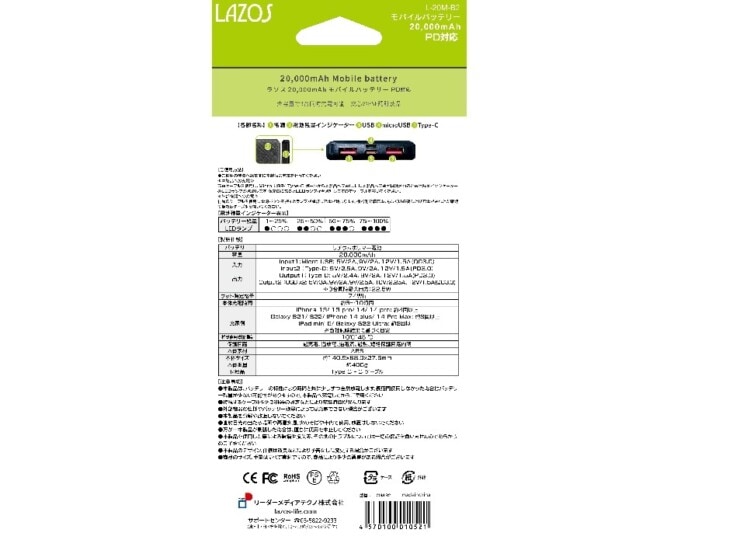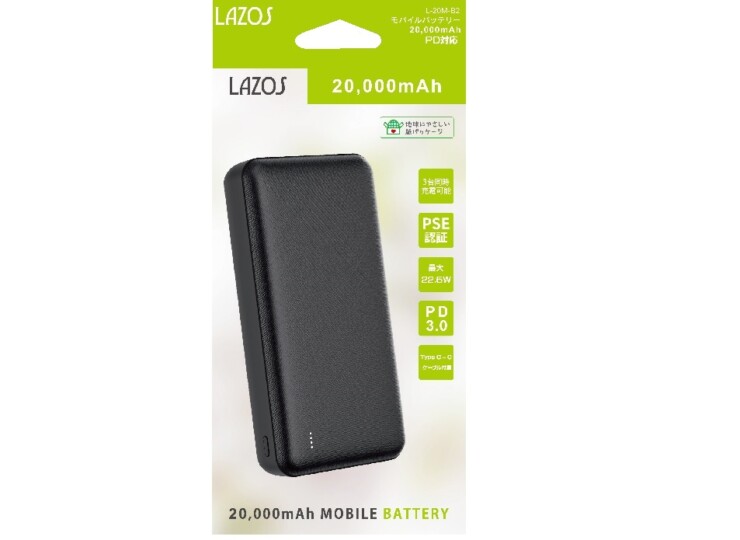モバイルバッテリー PD対応 20000mAh (ブラック) L-20M-B2についてつぶやく