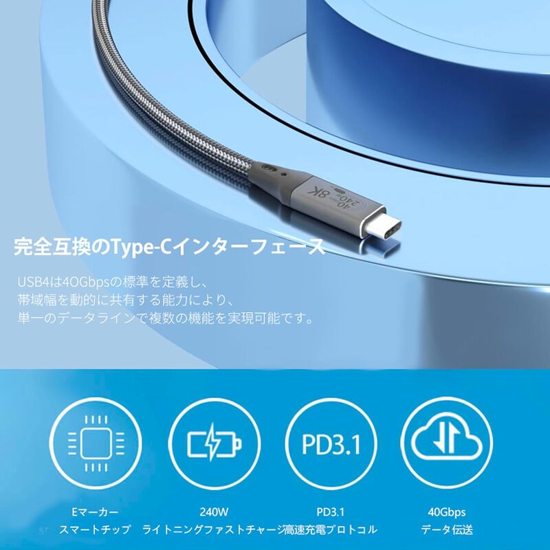 Luxxio USB4/Thunderbolt4 USB-C to Cケーブル 240W/40Gbps 8K60Hz Eマーカーチップ搭載 Thundderbolt3互換 ナイロン 1m LU-CCMC244010N