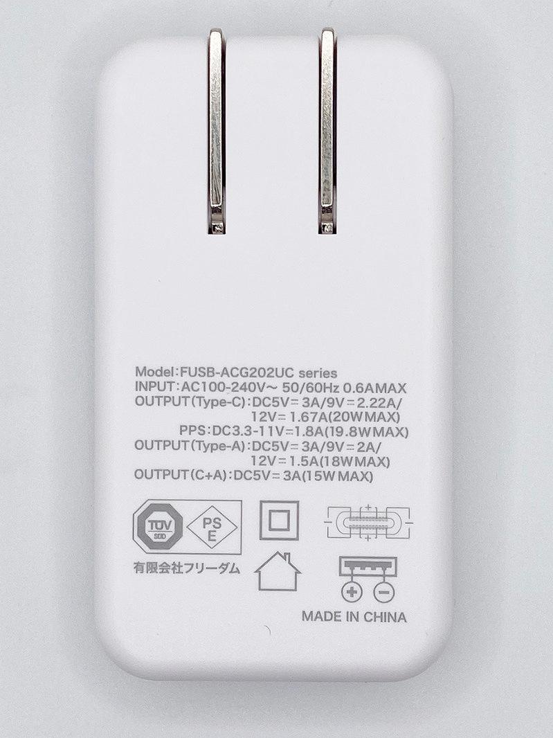 出力<単独使用時> ・USB Type-Cポート PD:5V/3A・9V/2.22A・12V/1.67A(20W MAX) PPS3.3V-11V(19.8W MAX)
