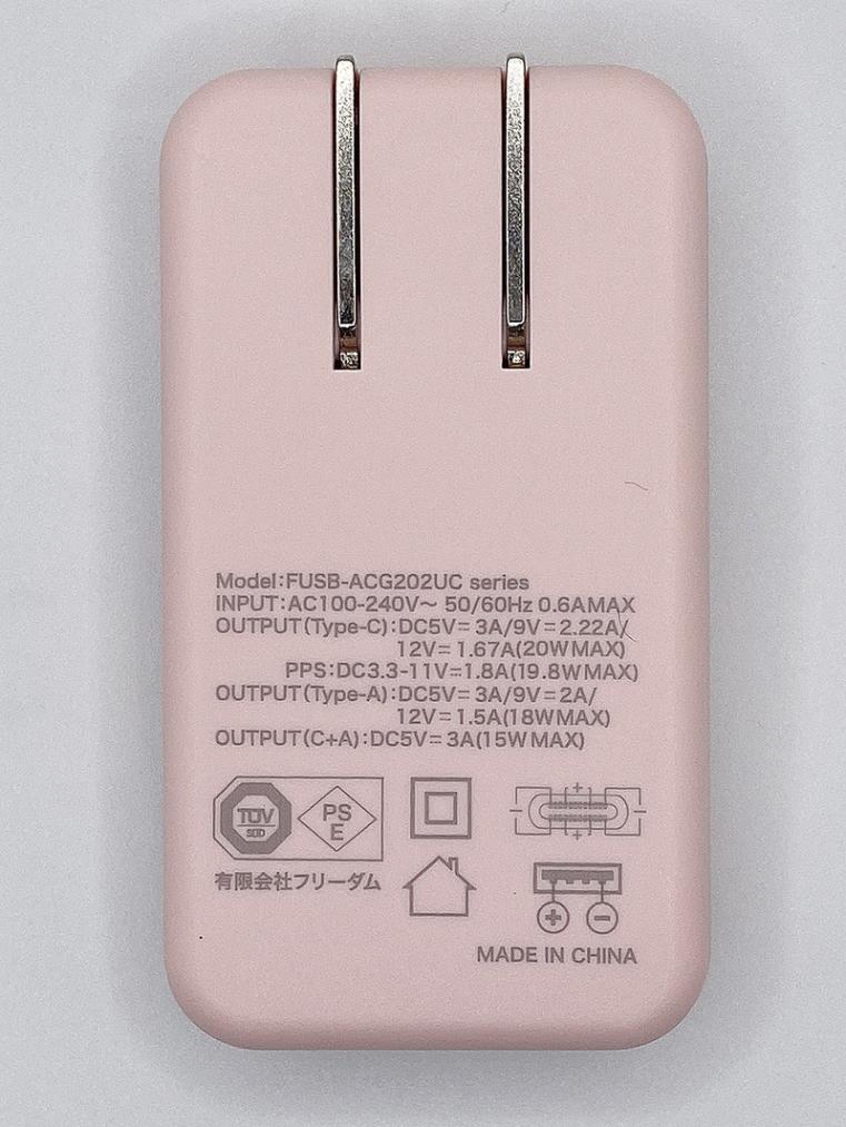 USB Power Delivery対応GaN(窒化ガリウム)搭載20W AC充電器(Cx1、Ax1ポート) パステルピンク FUSB-ACG202UCPK