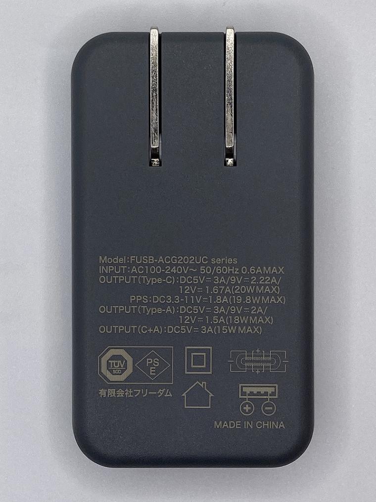 出力<単独使用時> ・USB Type-Cポート PD:5V/3A・9V/2.22A・12V/1.67A(20W MAX) PPS3.3V-11V(19.8W MAX)