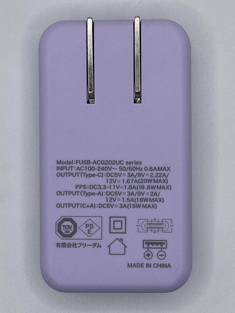 USB Power Delivery対応GaN(窒化ガリウム)搭載20W AC充電器(Cx1、Ax1ポート) ラベンダー FUSB-ACG202UCPU